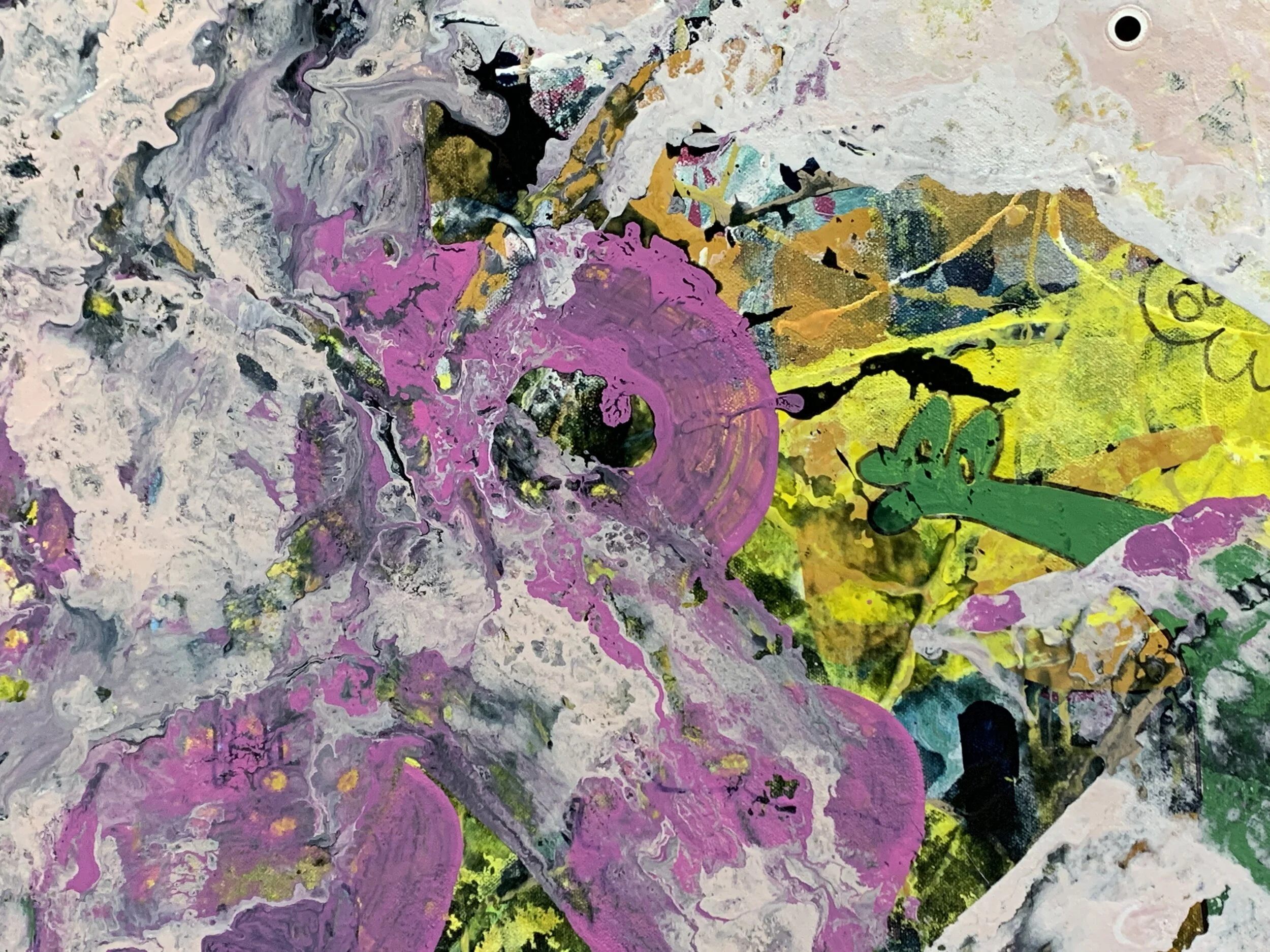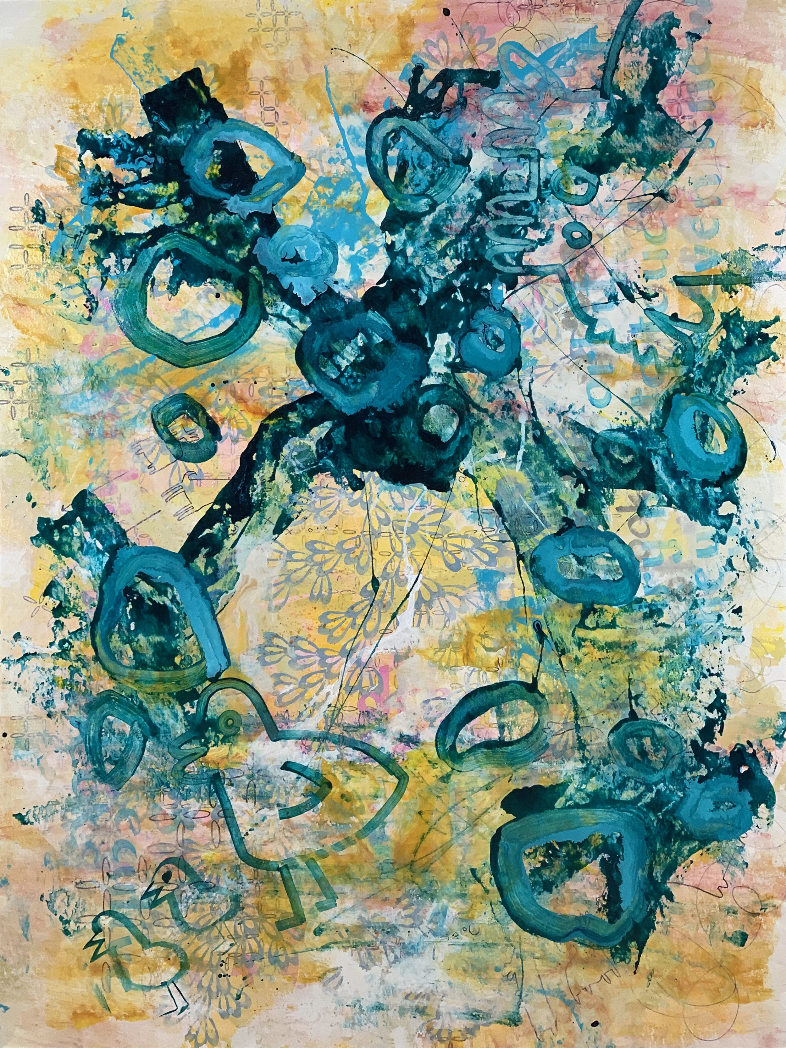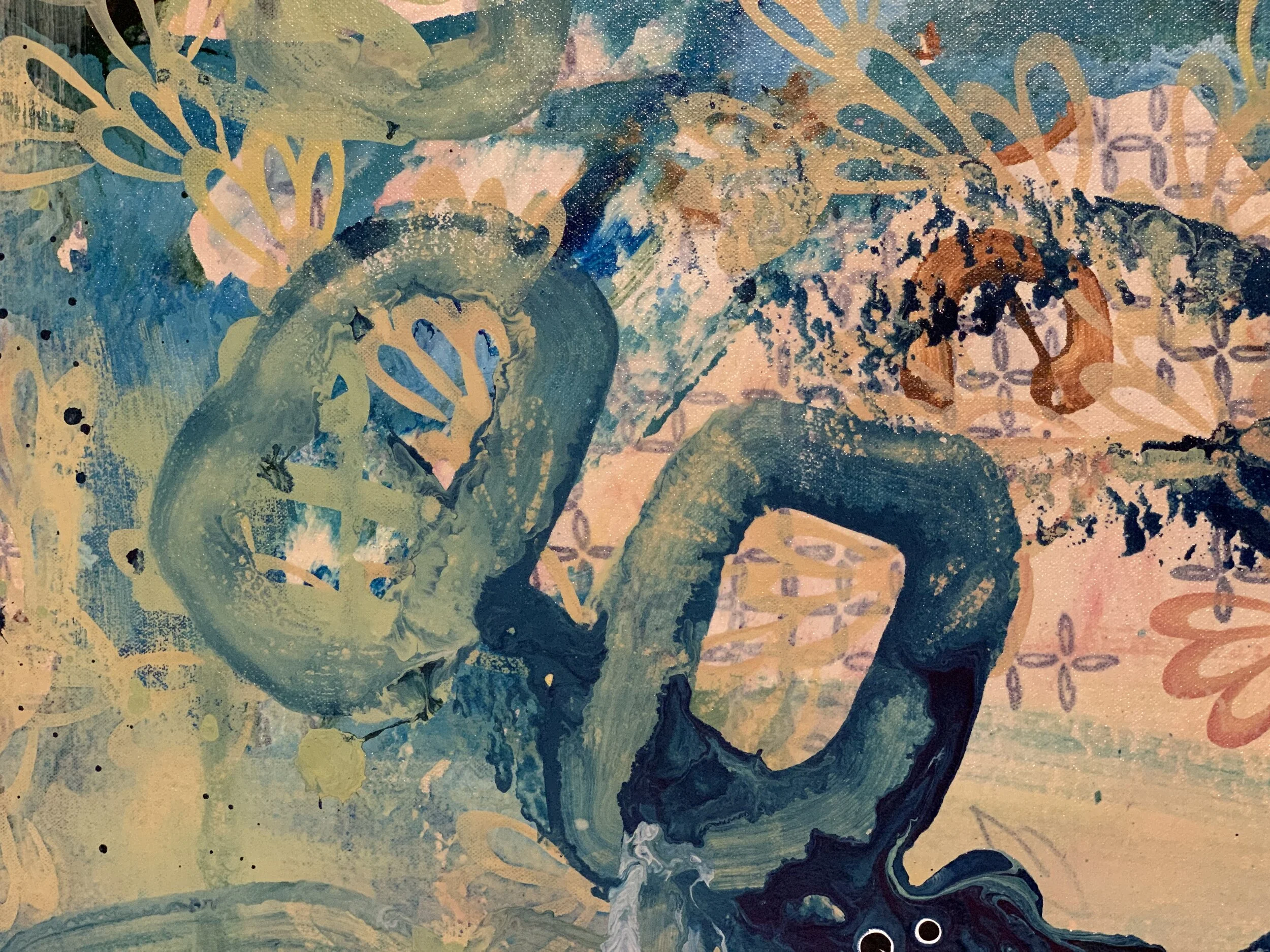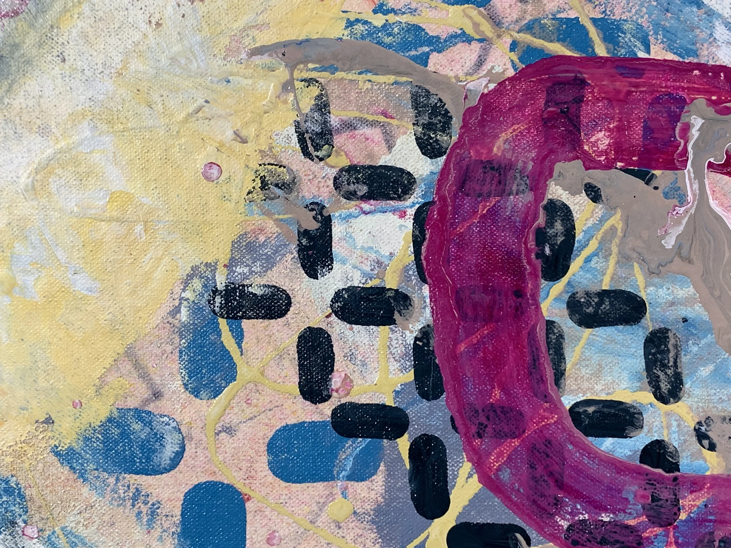 Blake Brasher is a visual artist working primarily in mixed media painting. His colorful abstractions are reflections on the nature of reality and what it is like to be a thinking being in a universe that is at once beautiful and terrifying. He grew up in Alaska, and has also lived in Turkey, Texas, and Arizona before moving to Massachusetts in 1997. He received his BS in Art and Design from MIT in 2003 and has been exhibiting his work publicly since 2008. His work is internationally collected, and he has participated in artist residency programs in Italy, Romania, France, New York, and Massachusetts. He is also a robotics engineer at Boston Dynamics where he is currently working on the Spot quadruped robot and he is the father of a precocious toe-headed baby boy.