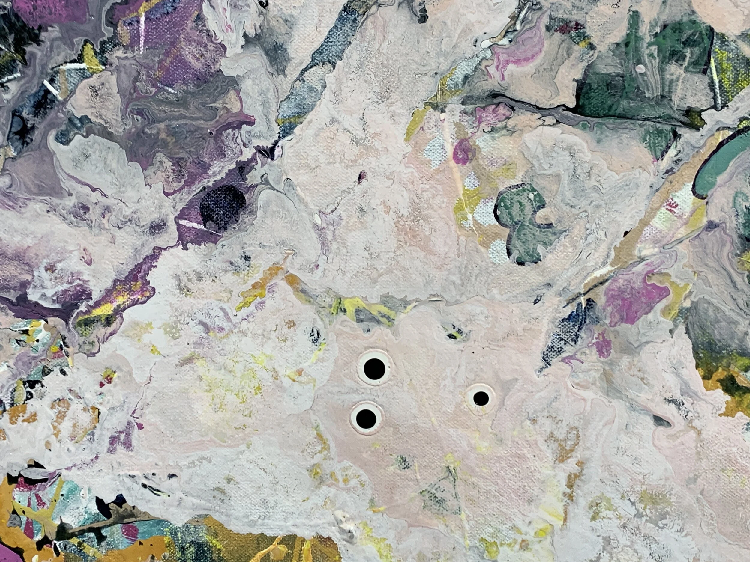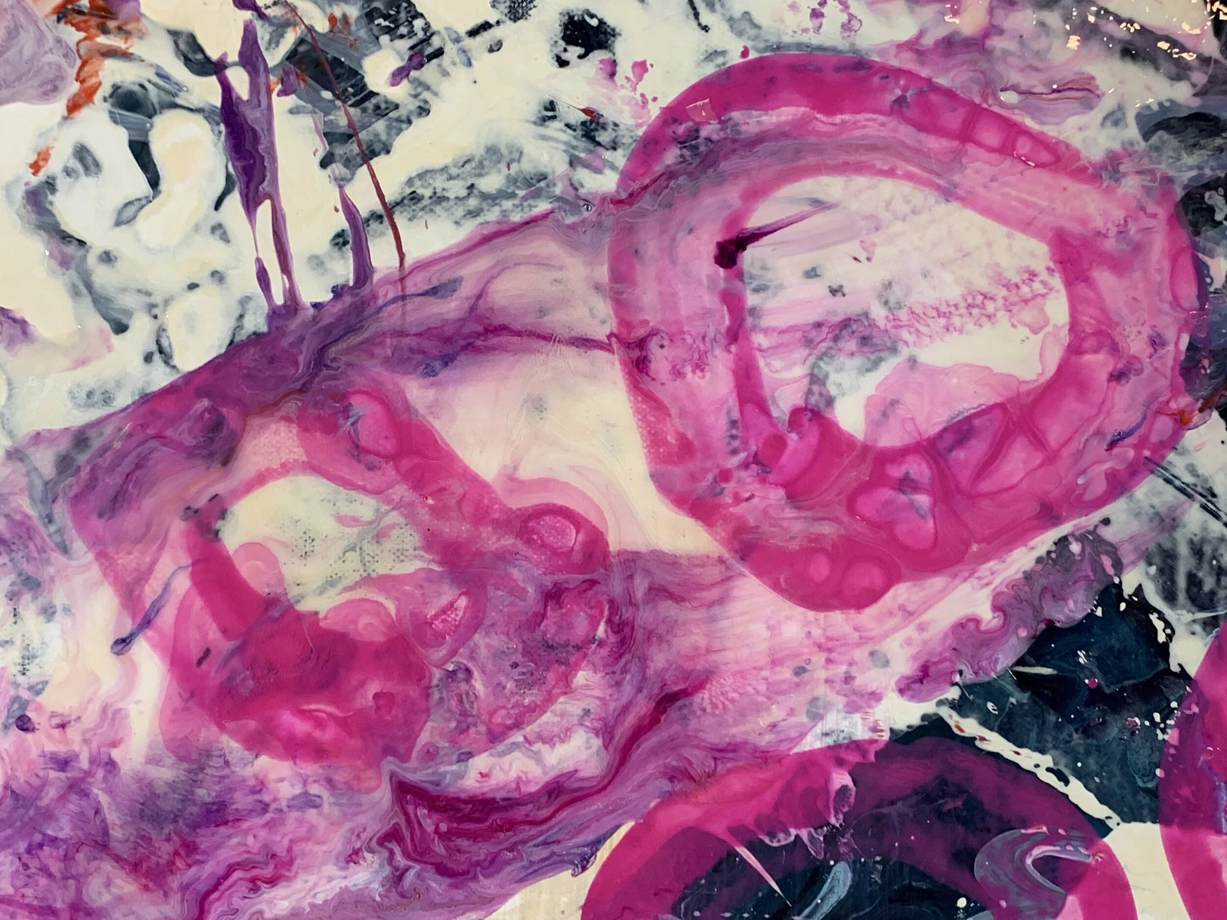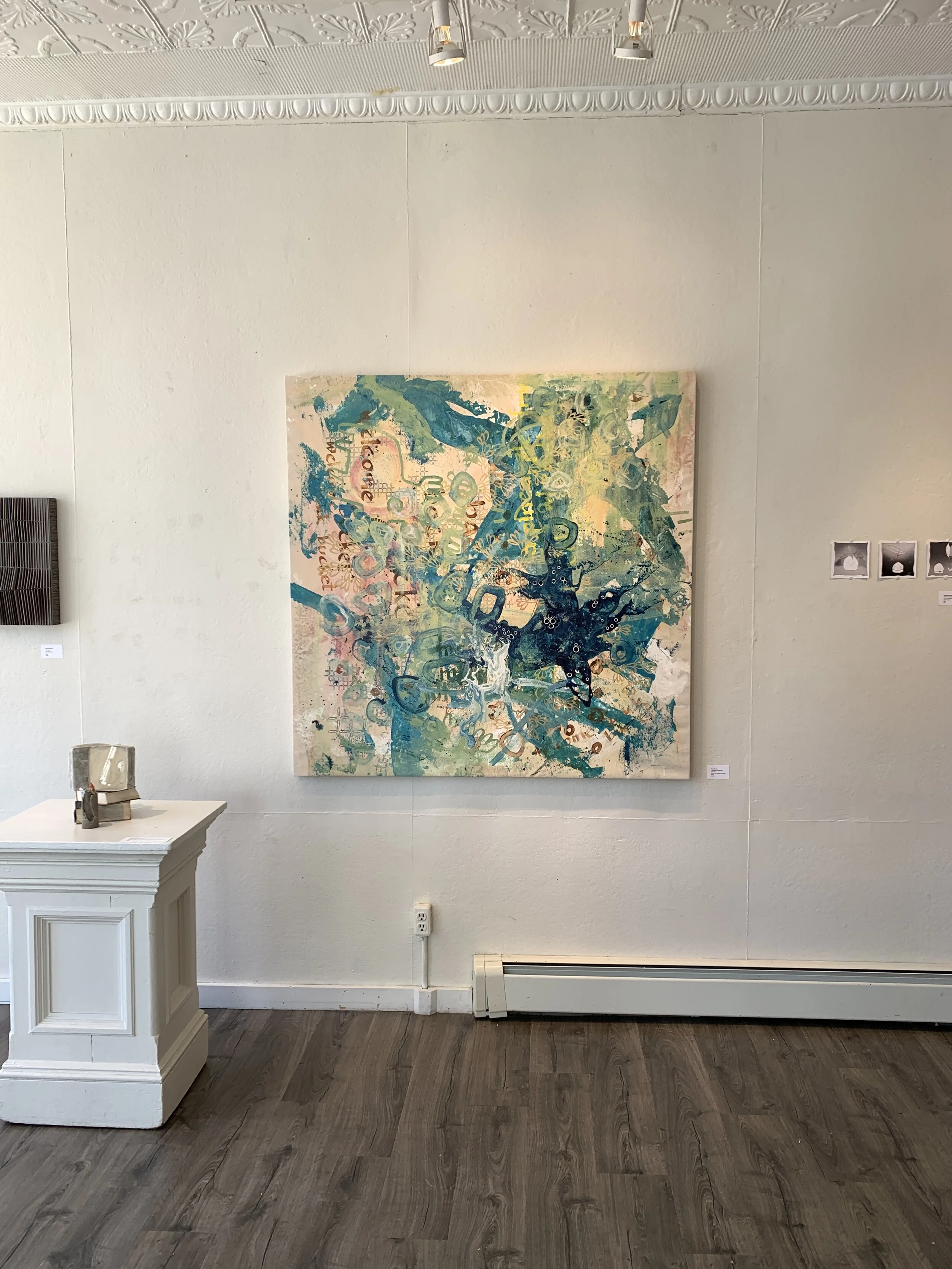 Blake Brasher is a visual artist working primarily in mixed media painting. His colorful abstractions are reflections on the nature of reality and what it is like to be a thinking being in a universe that is at once beautiful and terrifying. He grew up in Alaska, and has also lived in Turkey, Texas, and Arizona before moving to Massachusetts in 1997. He received his BS in Art and Design from MIT in 2003 and has been exhibiting his work publicly since 2008. His work is internationally collected, and he has participated in artist residency programs in Italy, Romania, France, New York, and Massachusetts. He is also a robotics engineer at Boston Dynamics where he is currently working on the Spot quadruped robot and he is the father of a precocious toe-headed baby boy.