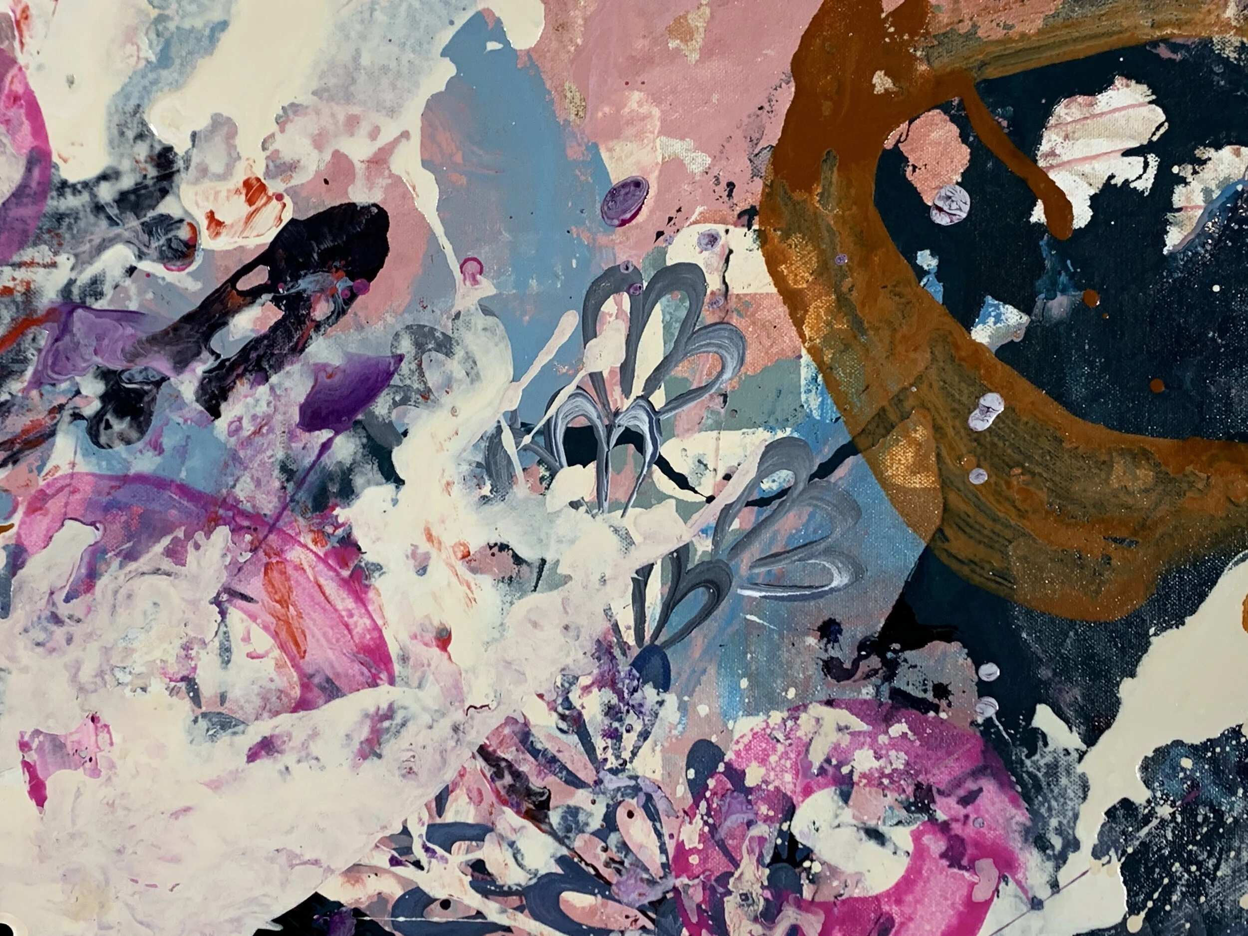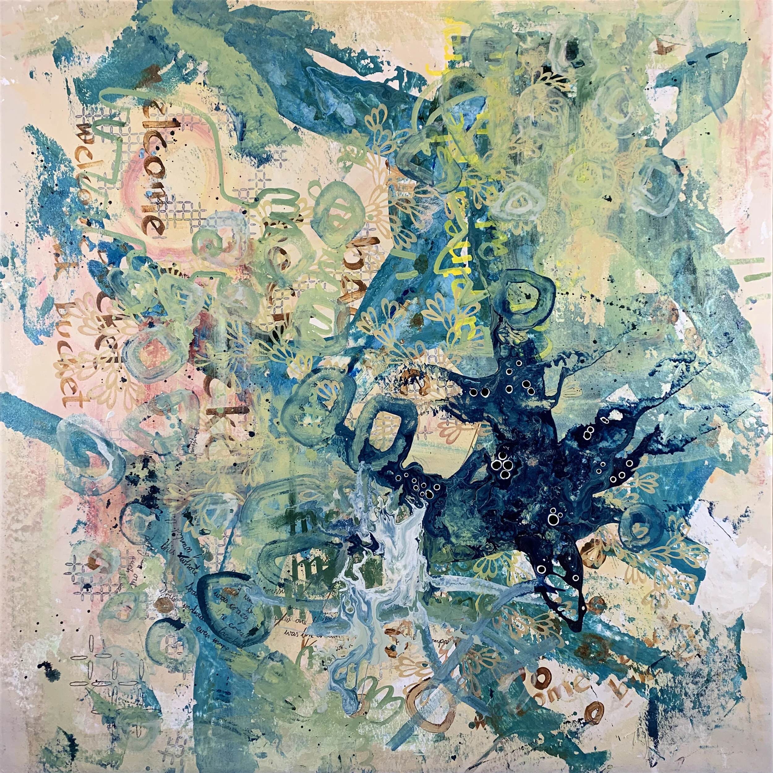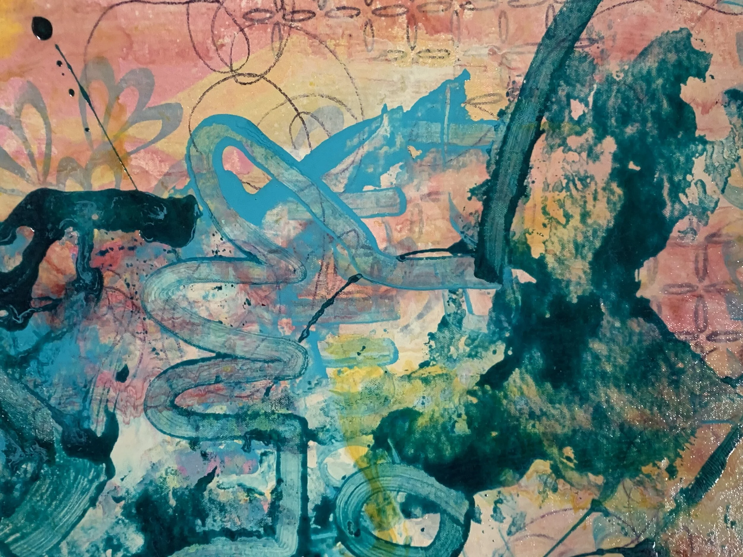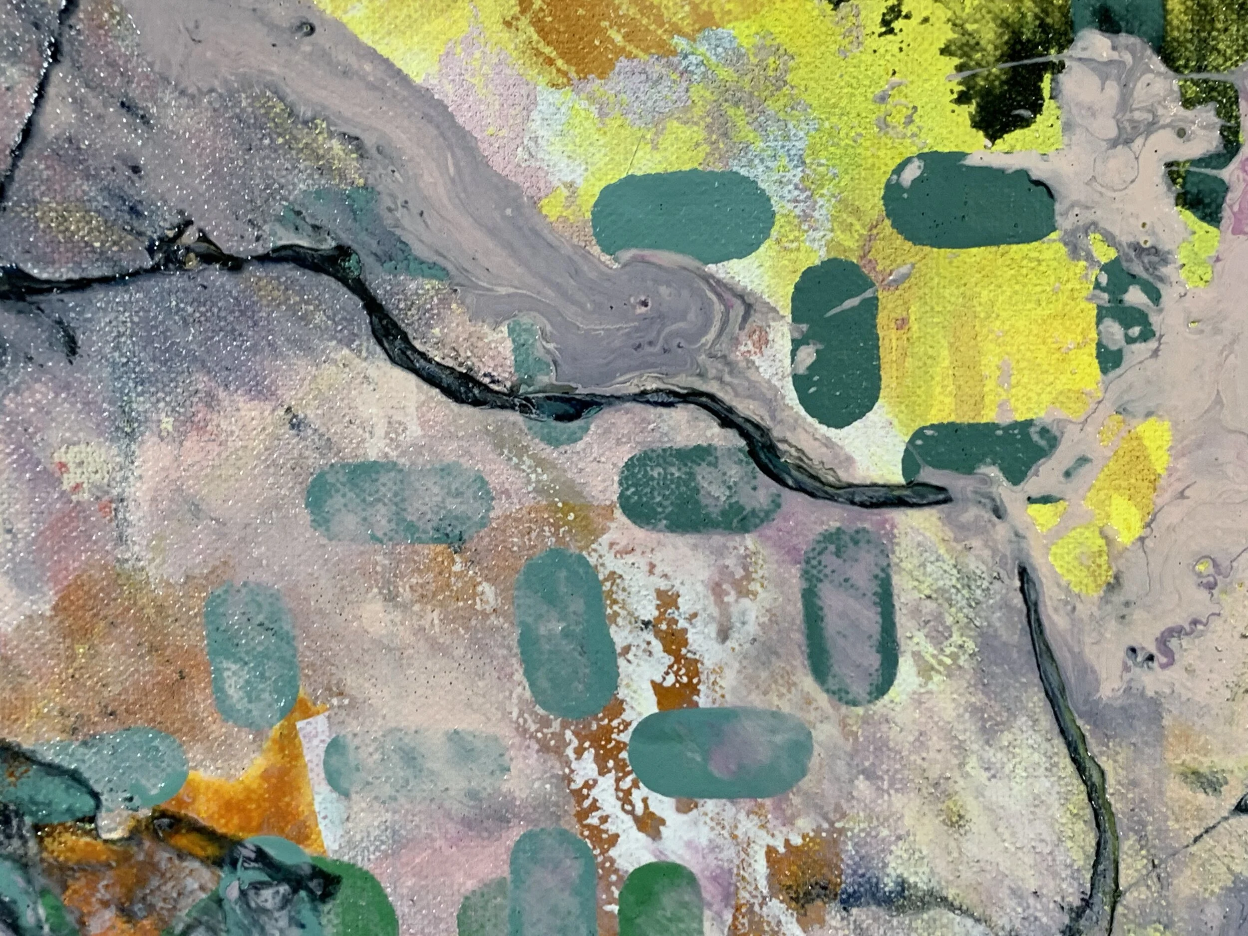 Blake Brasher is a visual artist working primarily in mixed media painting. His colorful abstractions are reflections on the nature of reality and what it is like to be a thinking being in a universe that is at once beautiful and terrifying. He grew up in Alaska, and has also lived in Turkey, Texas, and Arizona before moving to Massachusetts in 1997. He received his BS in Art and Design from MIT in 2003 and has been exhibiting his work publicly since 2008. His work is internationally collected, and he has participated in artist residency programs in Italy, Romania, France, New York, and Massachusetts. He is also a robotics engineer at Boston Dynamics where he is currently working on the Spot quadruped robot and he is the father of a precocious toe-headed baby boy.