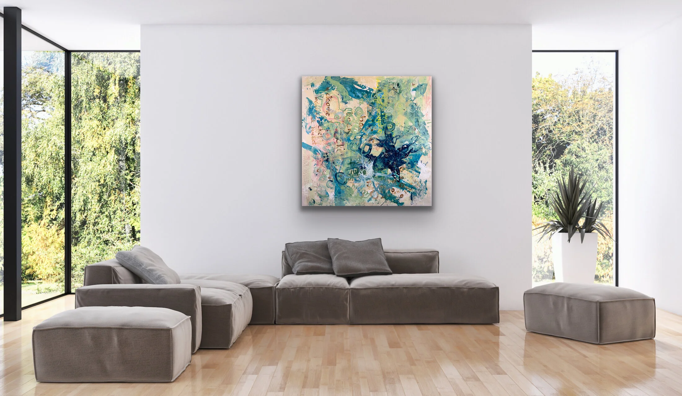 56 x 56 inches. acrylic and Sharpie on canvas