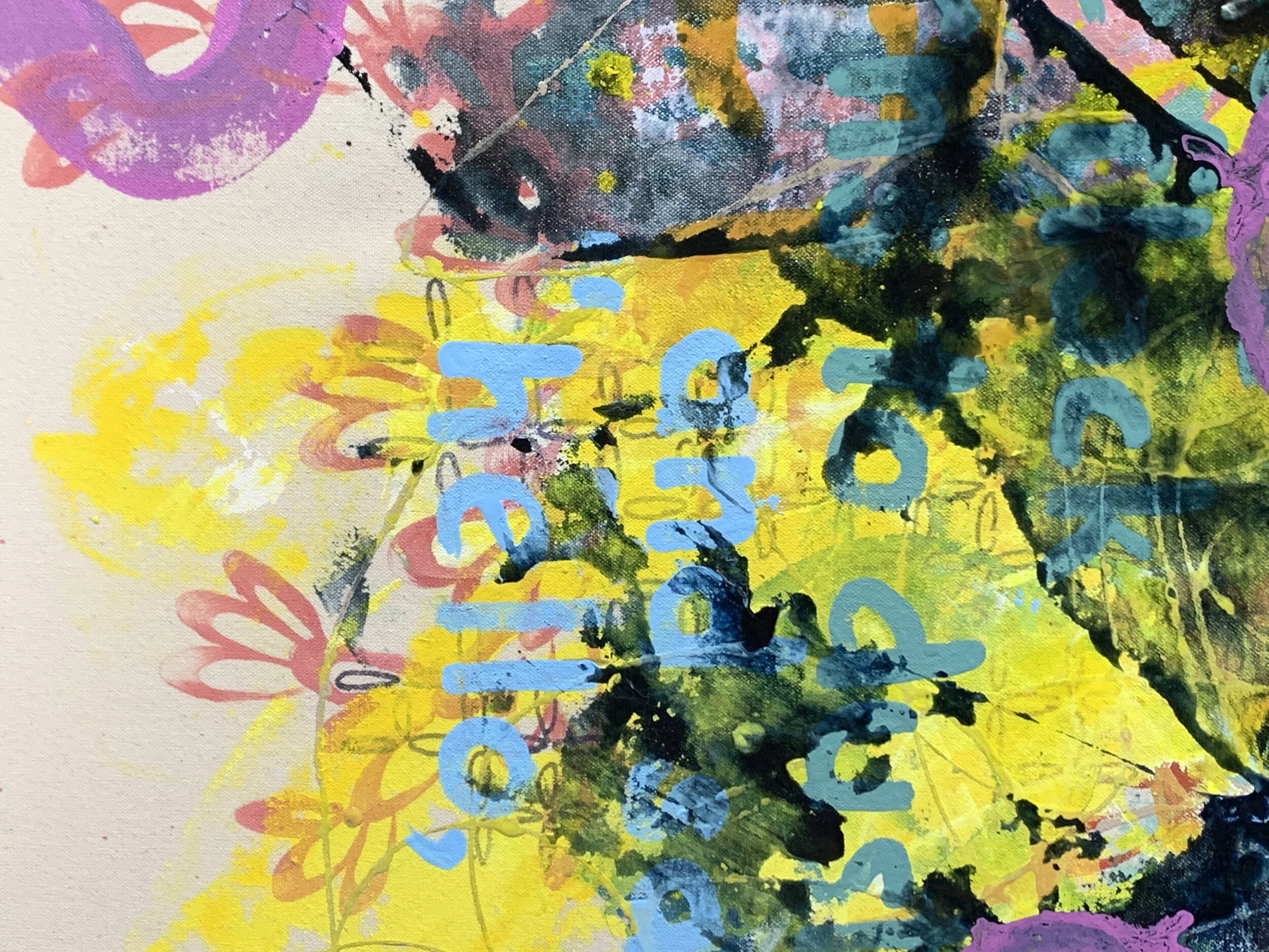 60 x 84 inches. Acrylic and Marker on Canvas. 2020