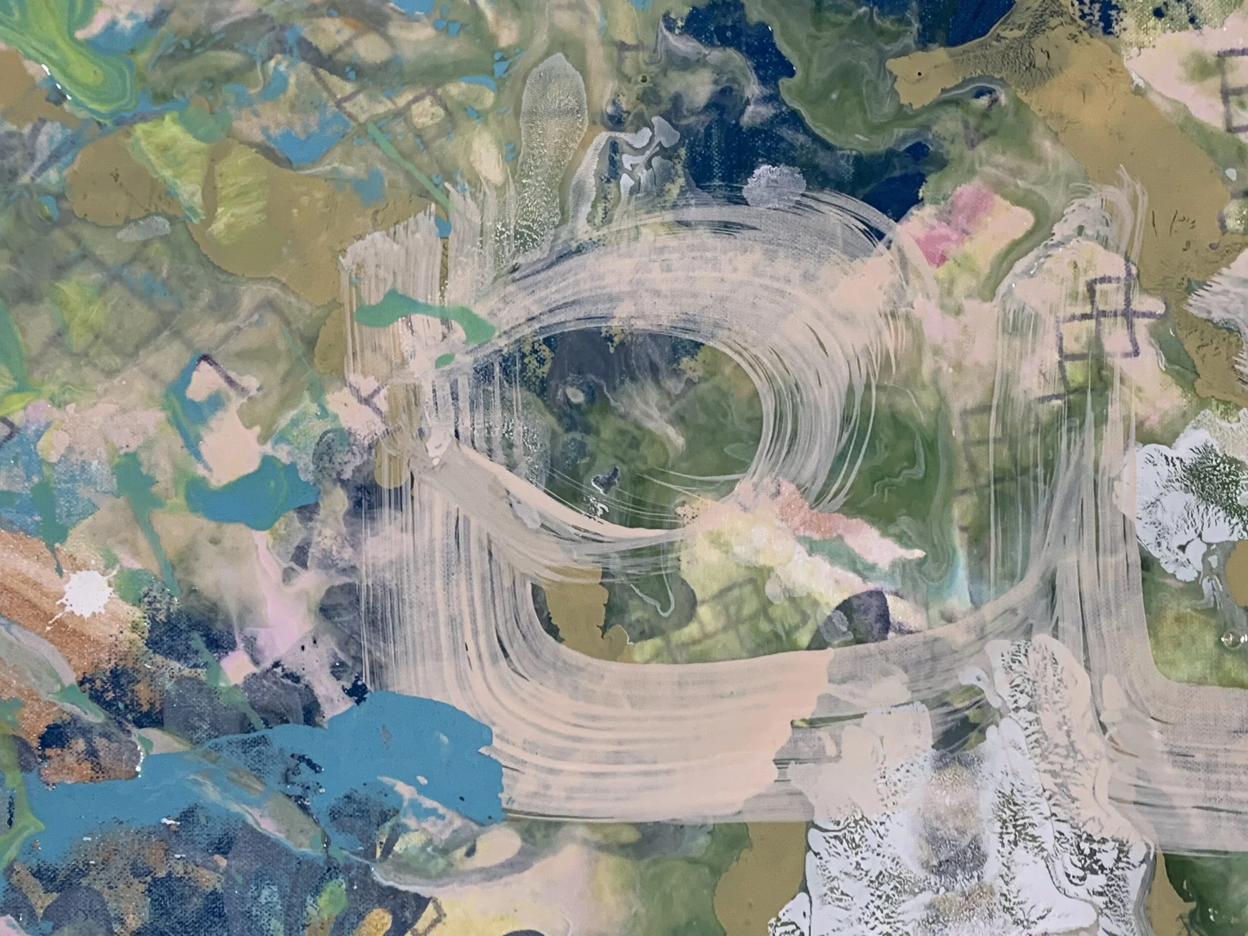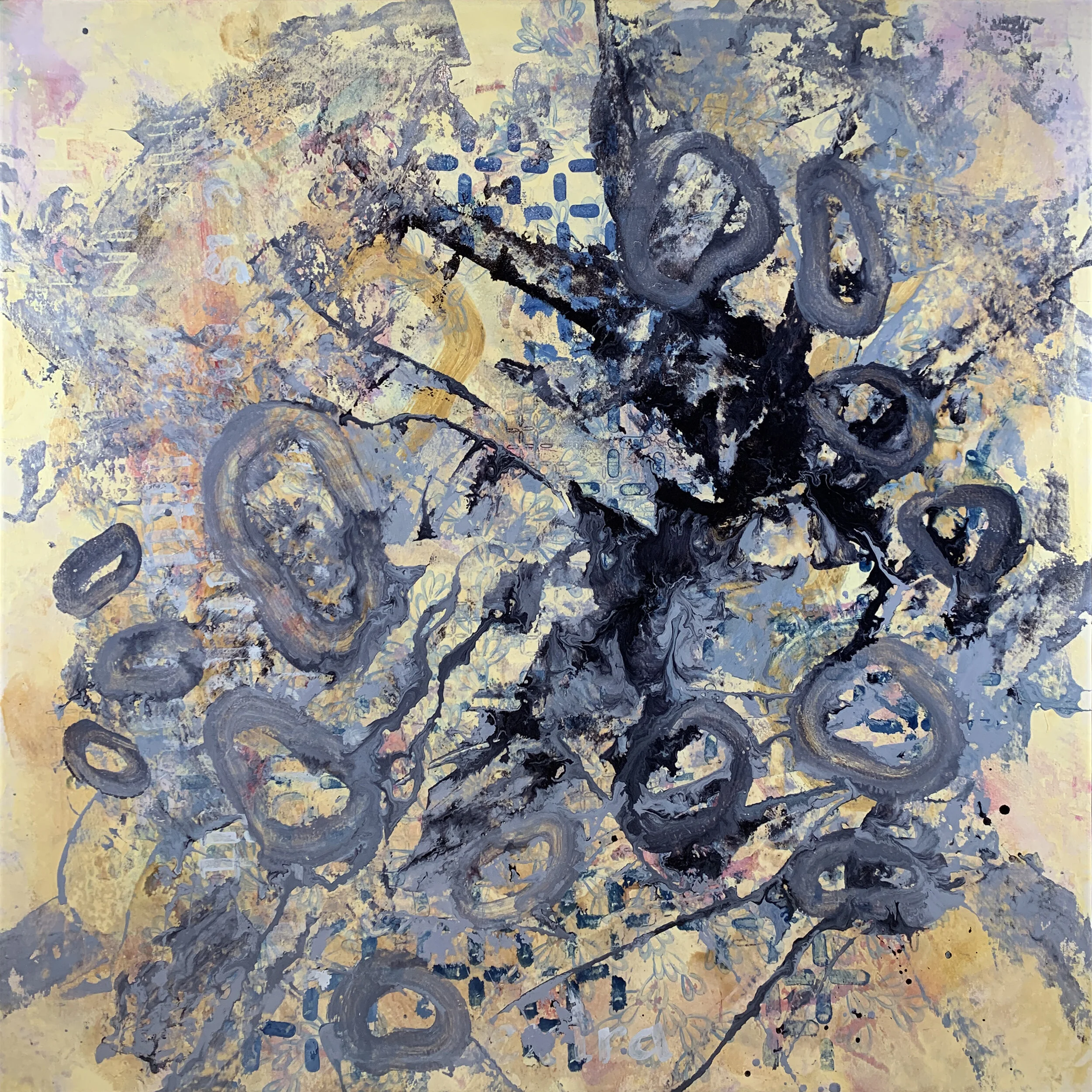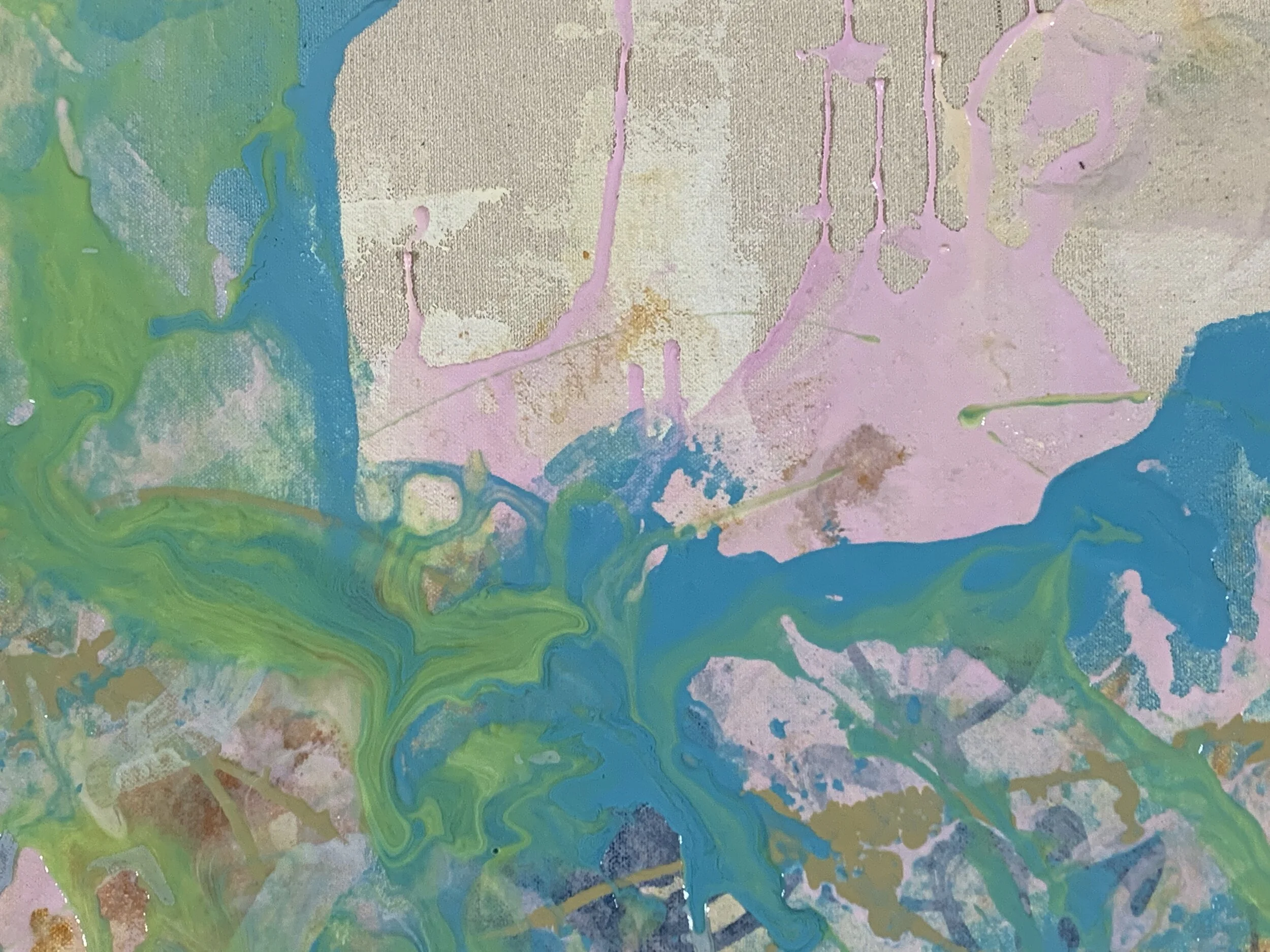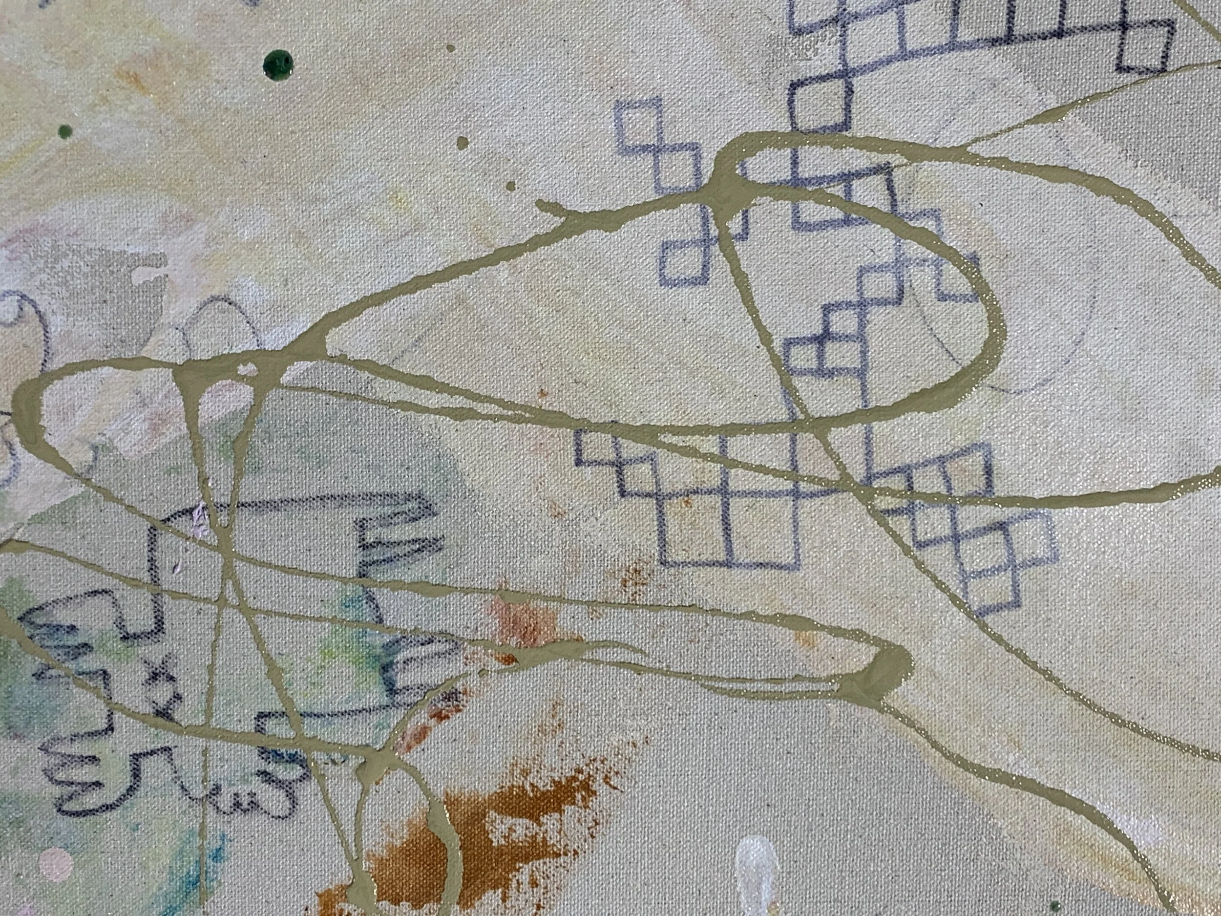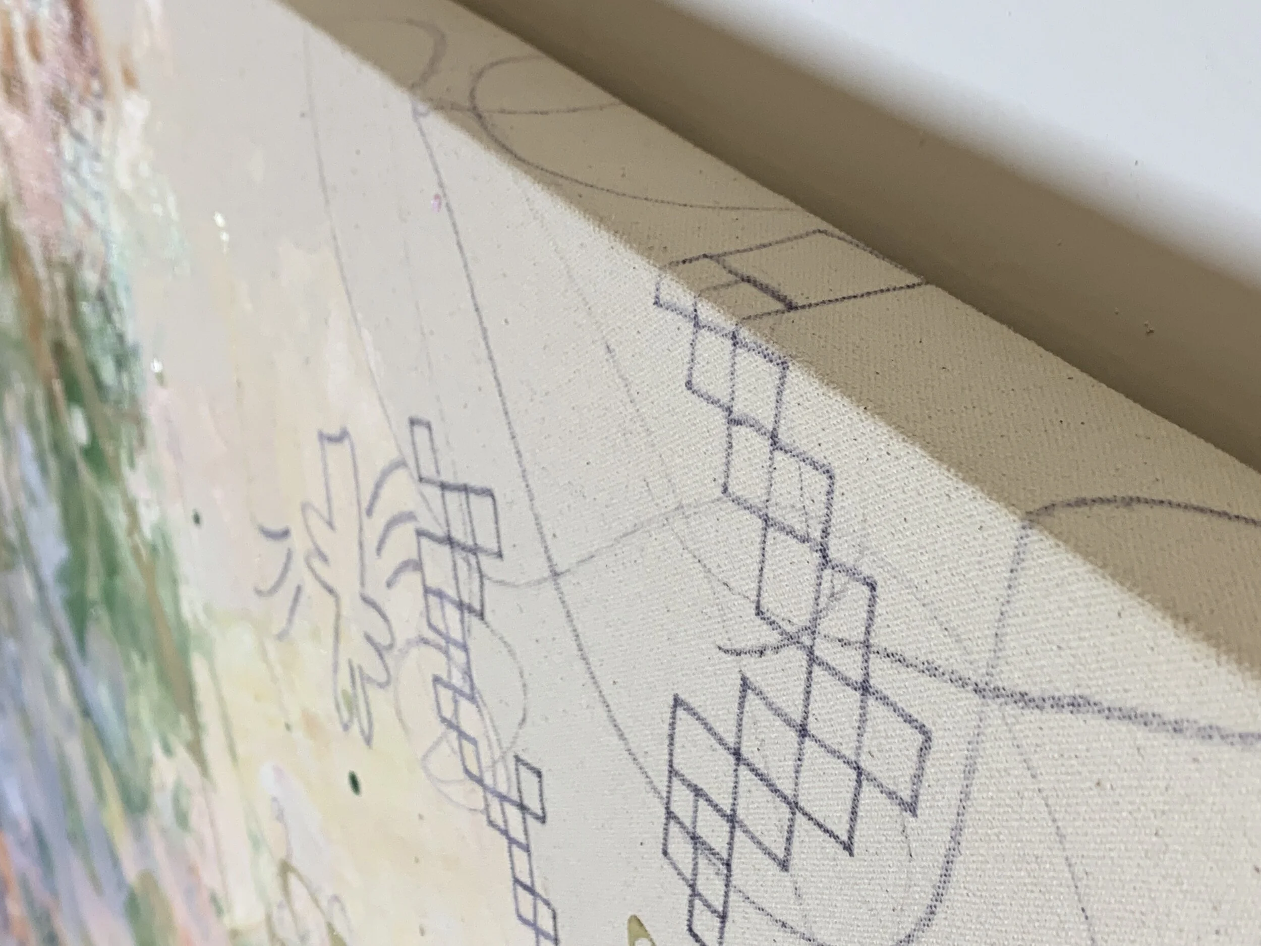 Over the course of this semester I’ve landed on a concept of painting as thinking. A painting is a problem, its solution, and the process of getting from one to the other condensed onto a surface, and it is a mechanism for communicating the process of thinking about the problem. It captures a little bit of what it was like to be me while I worked on the painting, as much as it is a distillation of the desire to mold chaos into order, the quest for beauty, and finding signal hidden in the noise.