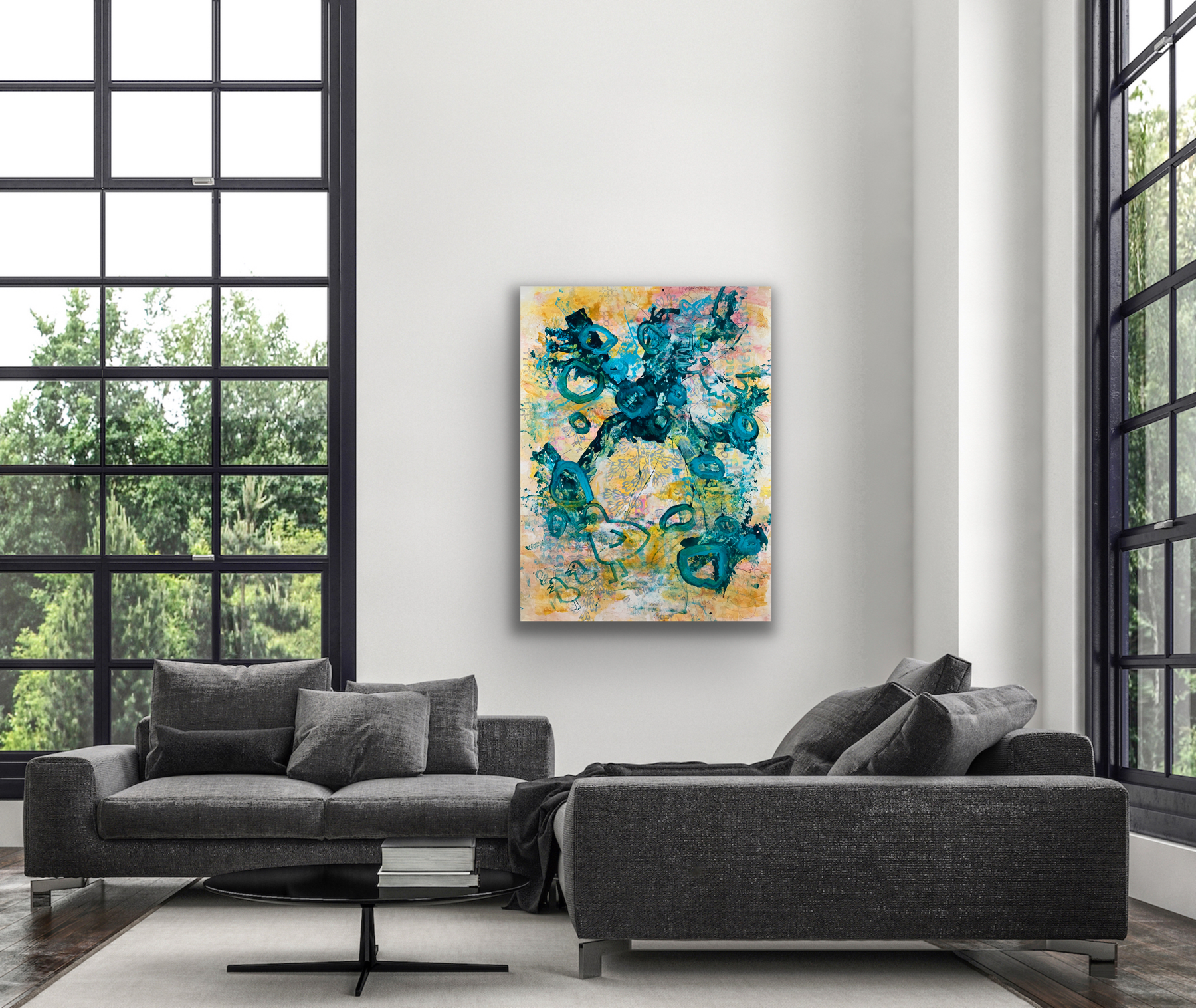 48 x 84 inches. Acrylic and Marker on Canvas. 2020.